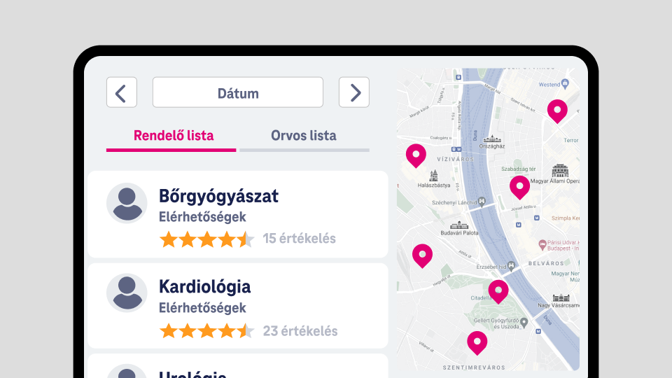 A térképes kereső segítségével válaszd ki a megfelelő klinikát és orvost, majd foglald le azonnal a számodra legmegfelelőbb időpontot!