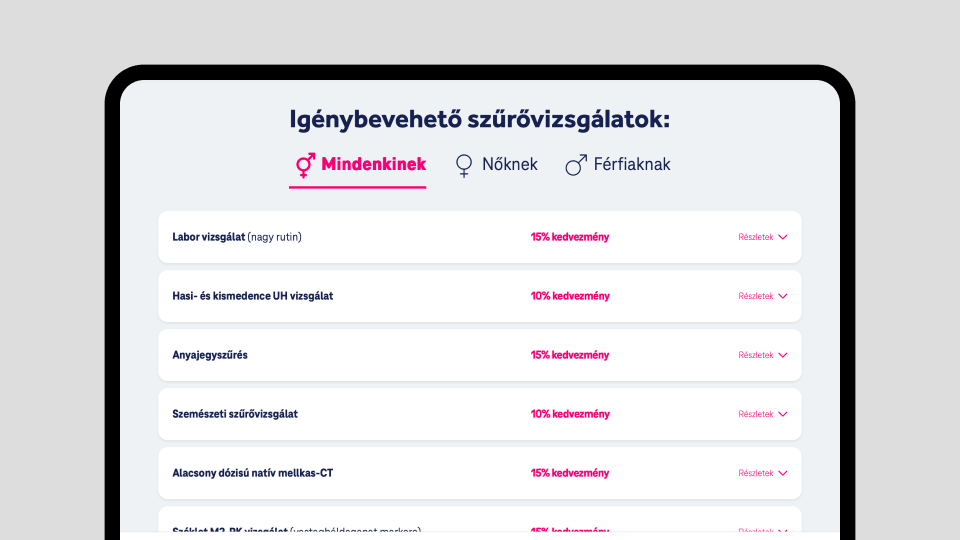 Légy egészségtudatos és vedd igénybe a szakemberek által neked ajánlott szűrővizsgálatokat kedvezményesen!