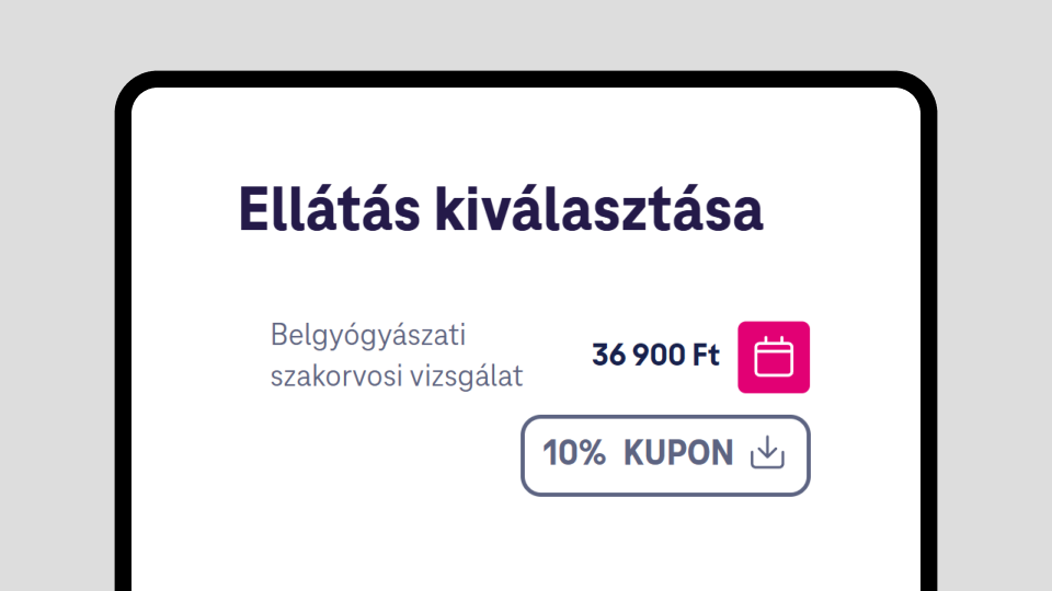 Számos egészségügyi ellátásra találsz kedvezményre jogosító kupont az orvoskeresőben. Szűrj a kedvezményekre és keresd a "Kupon elérhető" jelölést.